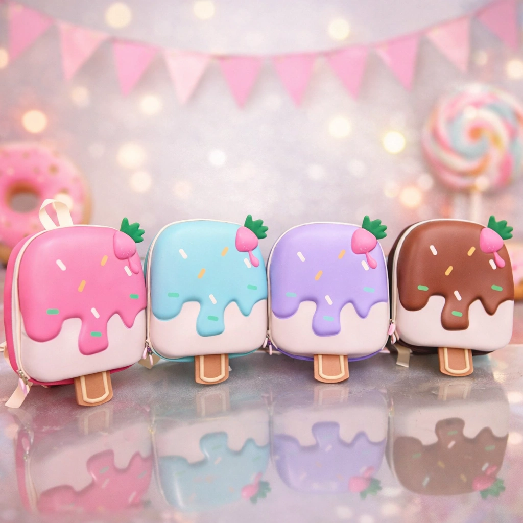 Perfect for carrying snacks, toys, stationery, and essentials — this ice-cream backpack adds fun to every outing.