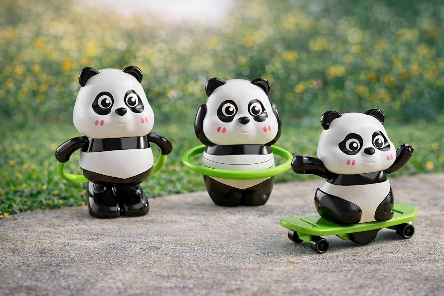 Each panda comes in a fun action style such as hula hoop, skipping rope, or skateboard design (single piece per purchase). The toy encourages screen-free play, helping kids explore basic motion, coordination, and cause-and-effect learning through simple mechanical action.
