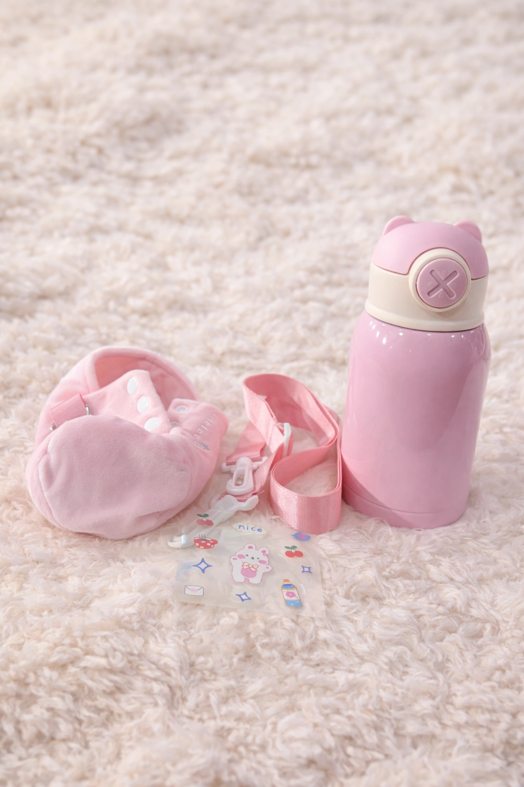 Cute, safe and super practical — this 500ml 316 stainless steel bottle with plush cover is perfect for kids who love stylish and comfy accessories.