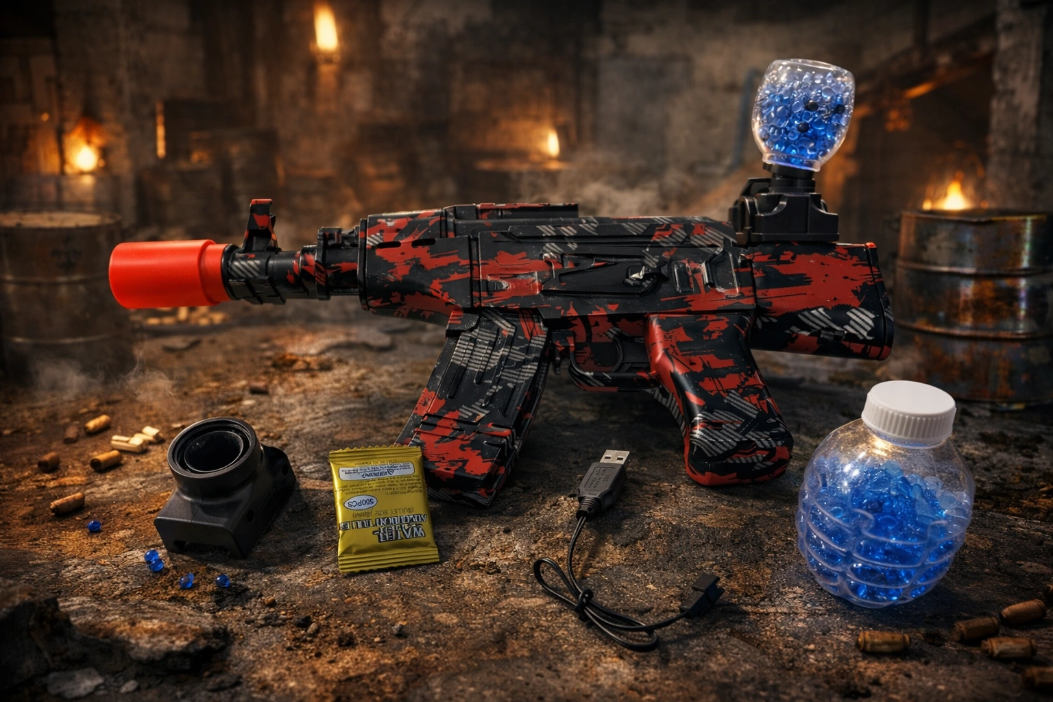 Bring thrilling action to playtime with this Electric Gel Blaster Gun, designed to deliver fast-paced, safe and exciting shooting fun. This blaster uses soft water-based gel bullets that burst on impact, making it safe for kids and mess-free.