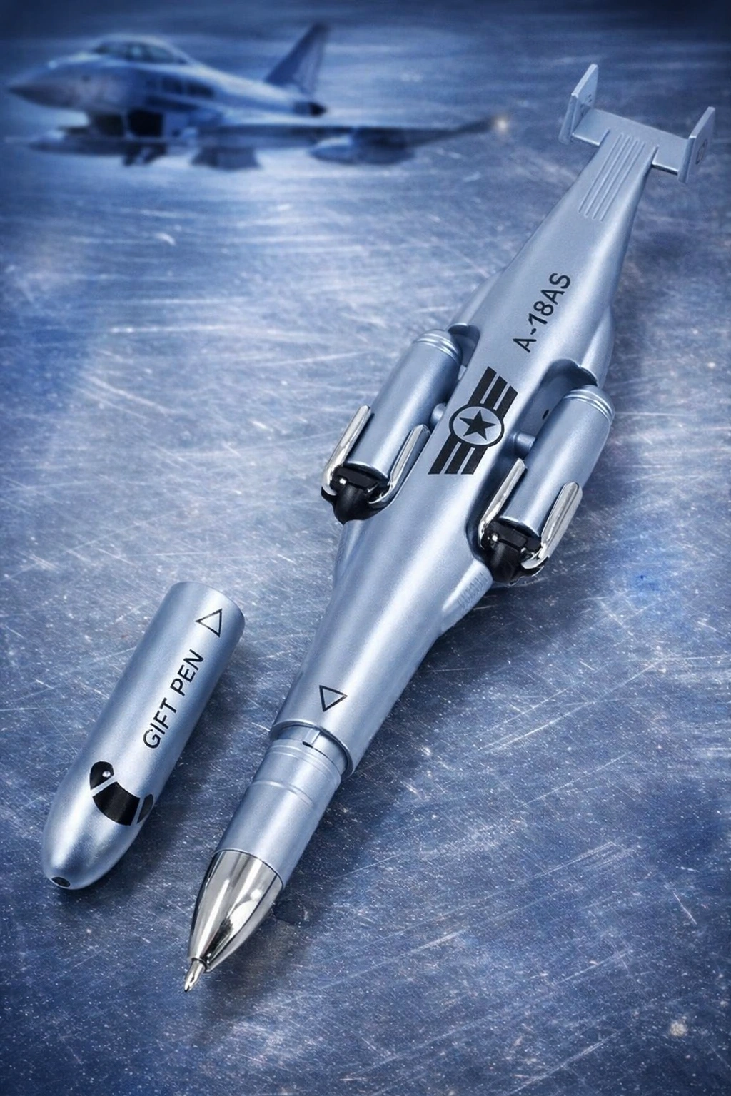 Add style and power to your writing with this Fighter Plane Pen designed in a realistic jet aircraft shape. Made with a premium metallic finish, this unique pen looks like a mini fighter plane while working as a smooth and reliable ball pen.