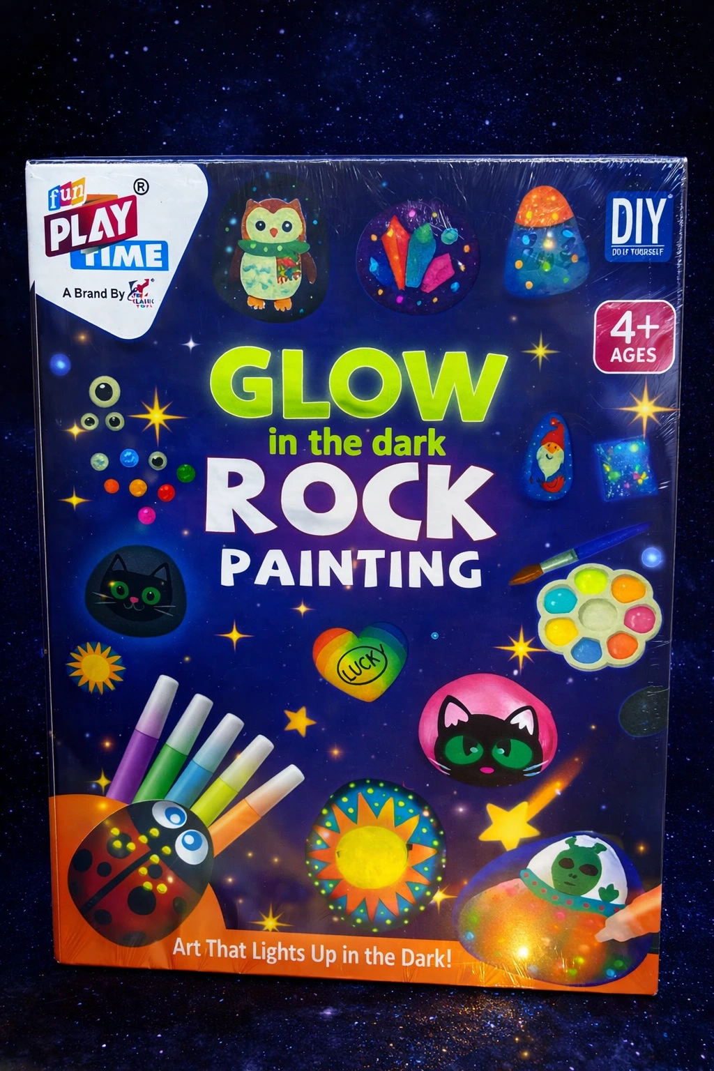 Unleash your child’s creativity with the Glow in the Dark Rock Painting Kit — a fun and engaging DIY art & craft activity for kids. This kit lets children paint, decorate and design their own glowing rock artworks using bright colors, glow paints, crystal gems and googly eyes.