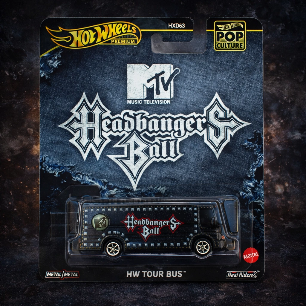 Rock your Hot Wheels collection with the Hot Wheels Premium MTV Headbangers Ball HW Tour Bus, inspired by the iconic heavy-metal TV show that defined an era. This premium die-cast collectible captures the raw, edgy vibe of MTV’s Headbangers Ball with bold graphics and a rugged tour-bus design.