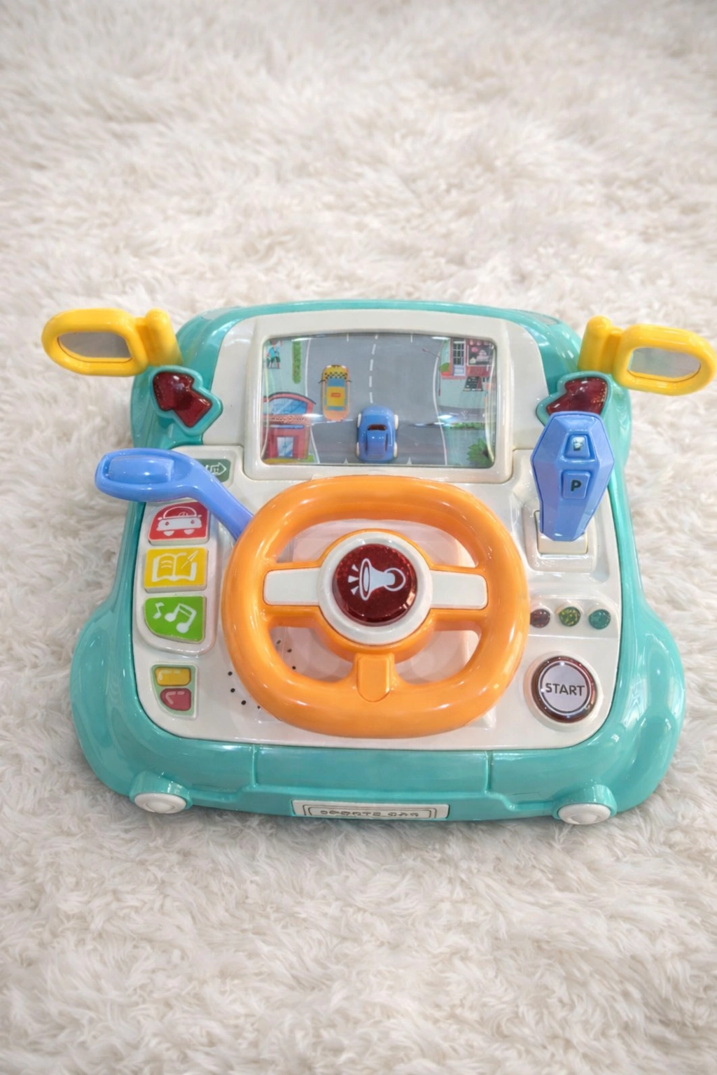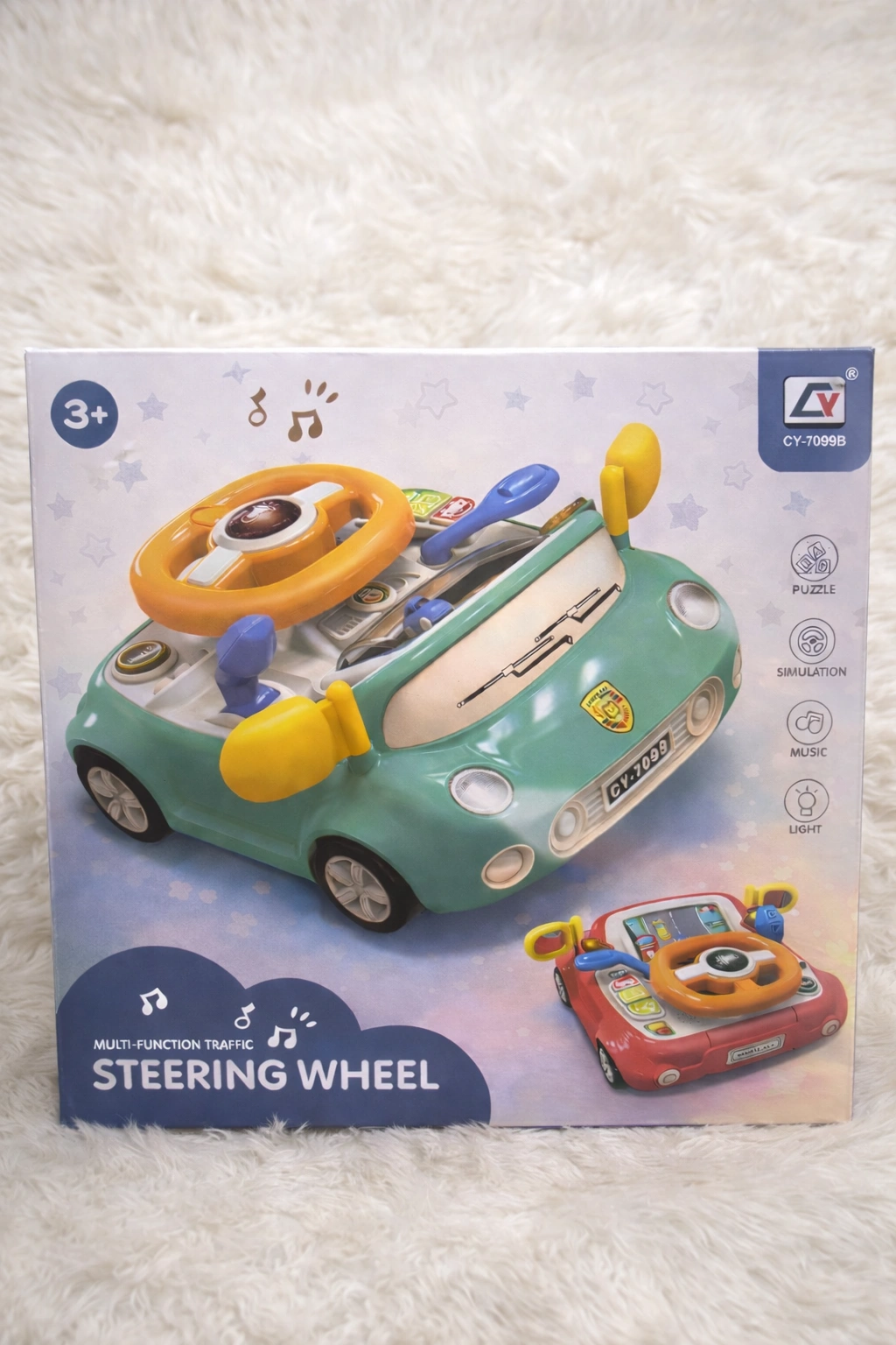 Turn playtime into a fun driving adventure! This Multi-Function Traffic Steering Wheel Toy lets kids experience real-like driving with a steering wheel, gear lever, turn signal stalk, lights and music. The built-in screen shows a moving road scene that changes lanes when kids turn the steering wheel, making play more engaging and interactive.