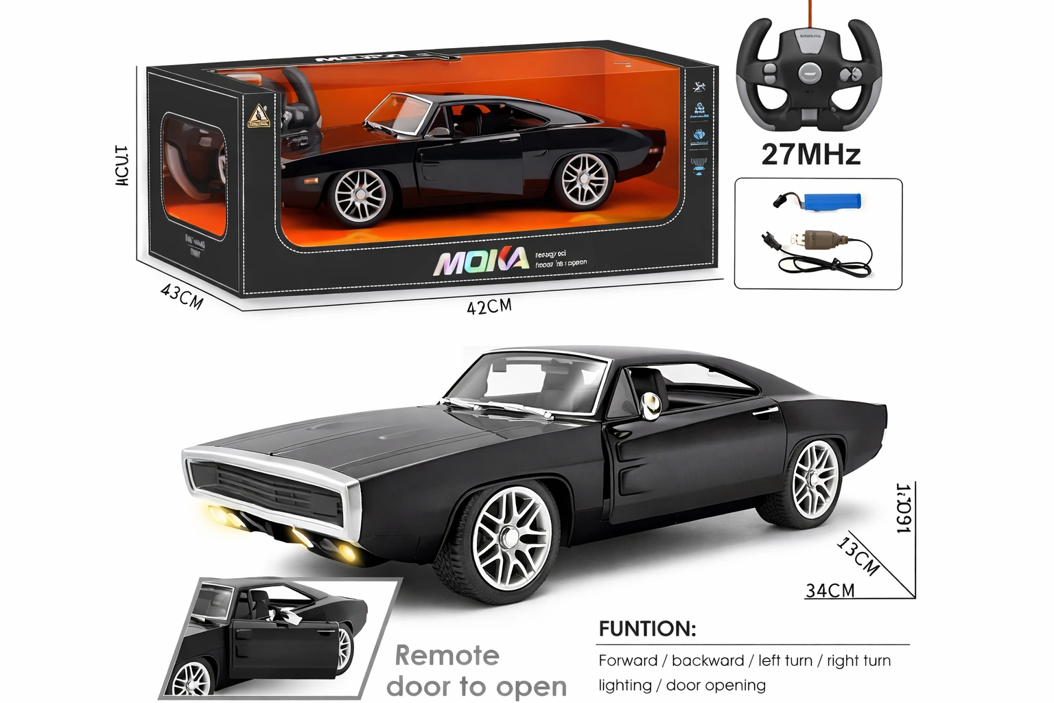 The remote control works on 2 AA batteries, making it easy to operate the car and control the door opening feature. With its stylish design and interactive functions, this RC Dodge Car is perfect for kids, collectors, and gift purposes.